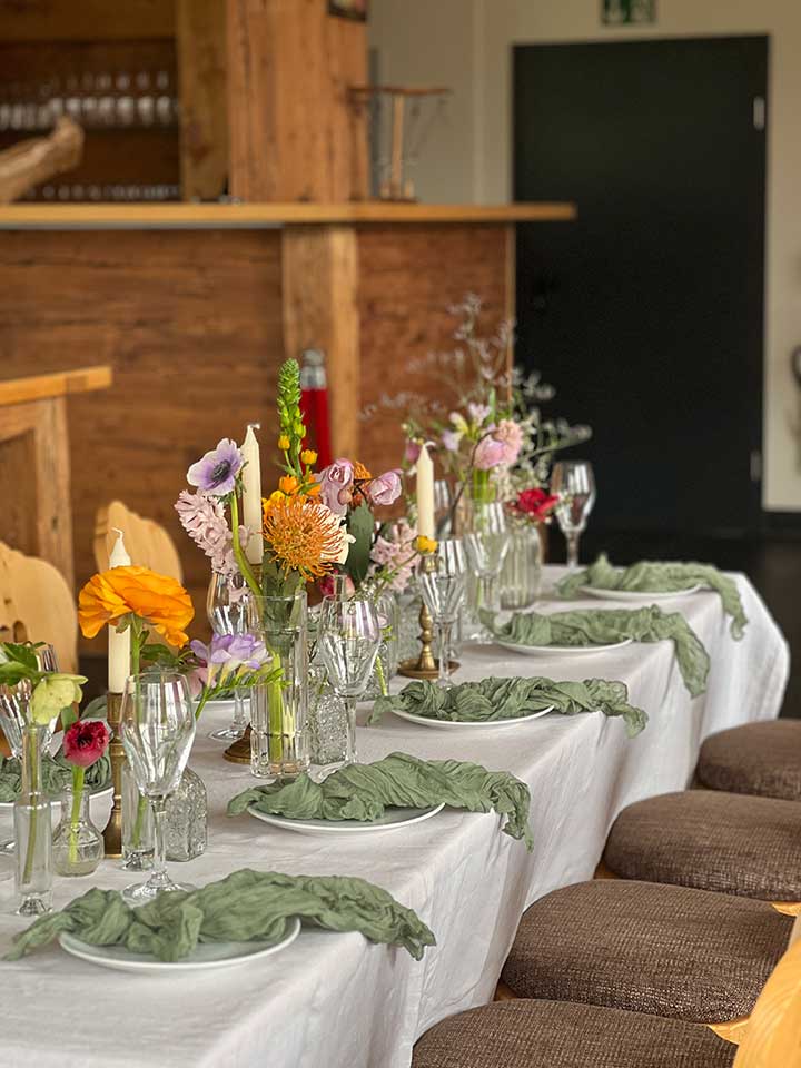 Unsere Eventlocation wird komplett möbliert und mit einer voll ausgestatteten Küche angeboten. Zudem können wir für Ihre Gäste zusätzlich ausreichend Geschirr, Gläser und Besteck zur Verfügung stellen.